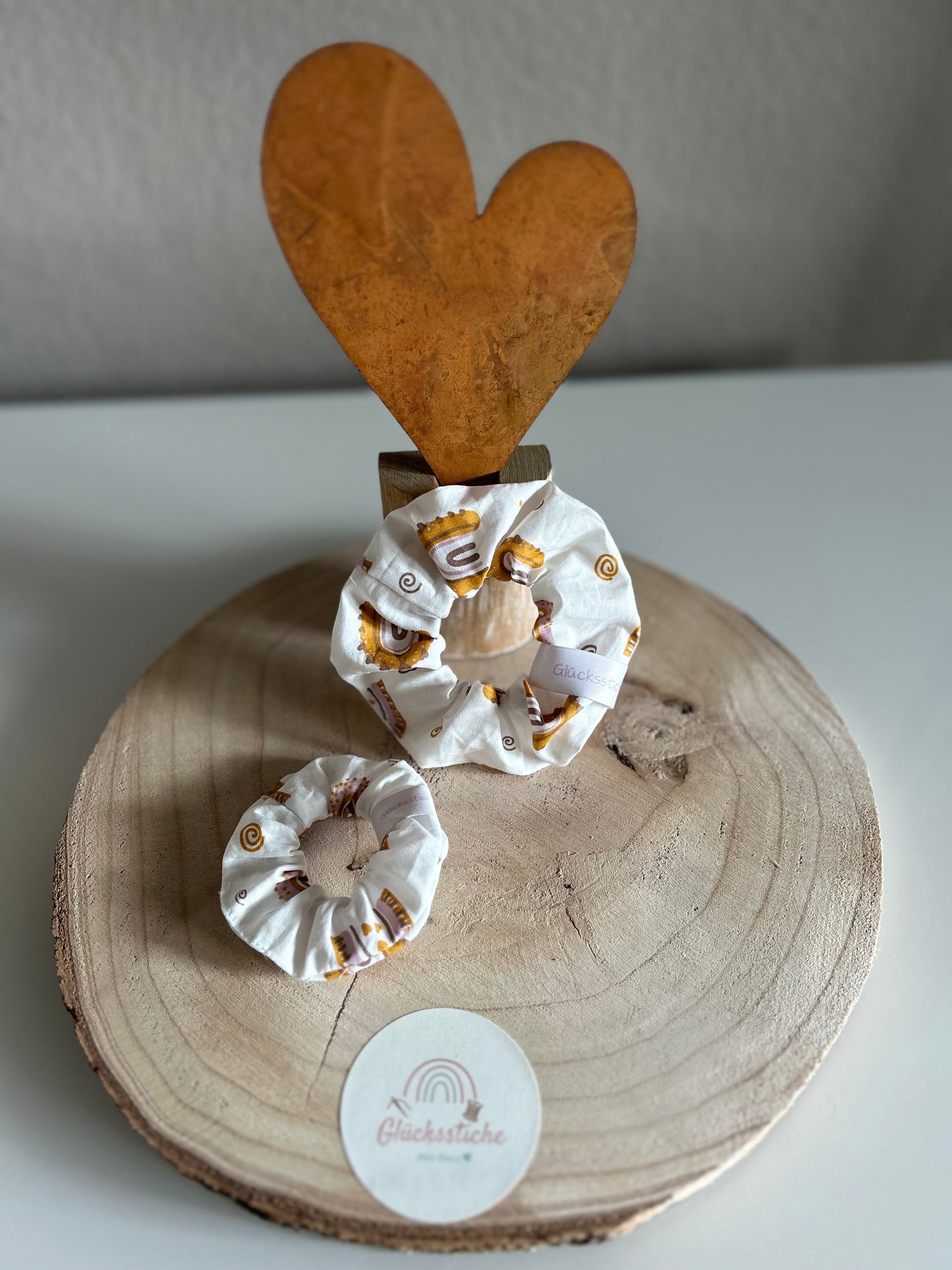 Die Scrunchies können ganz normal in der Waschmaschine bei maximal 40 Grad gewaschen werden. Das Trocknen im Trockner stellt für die Scrunchies kein Problem da.